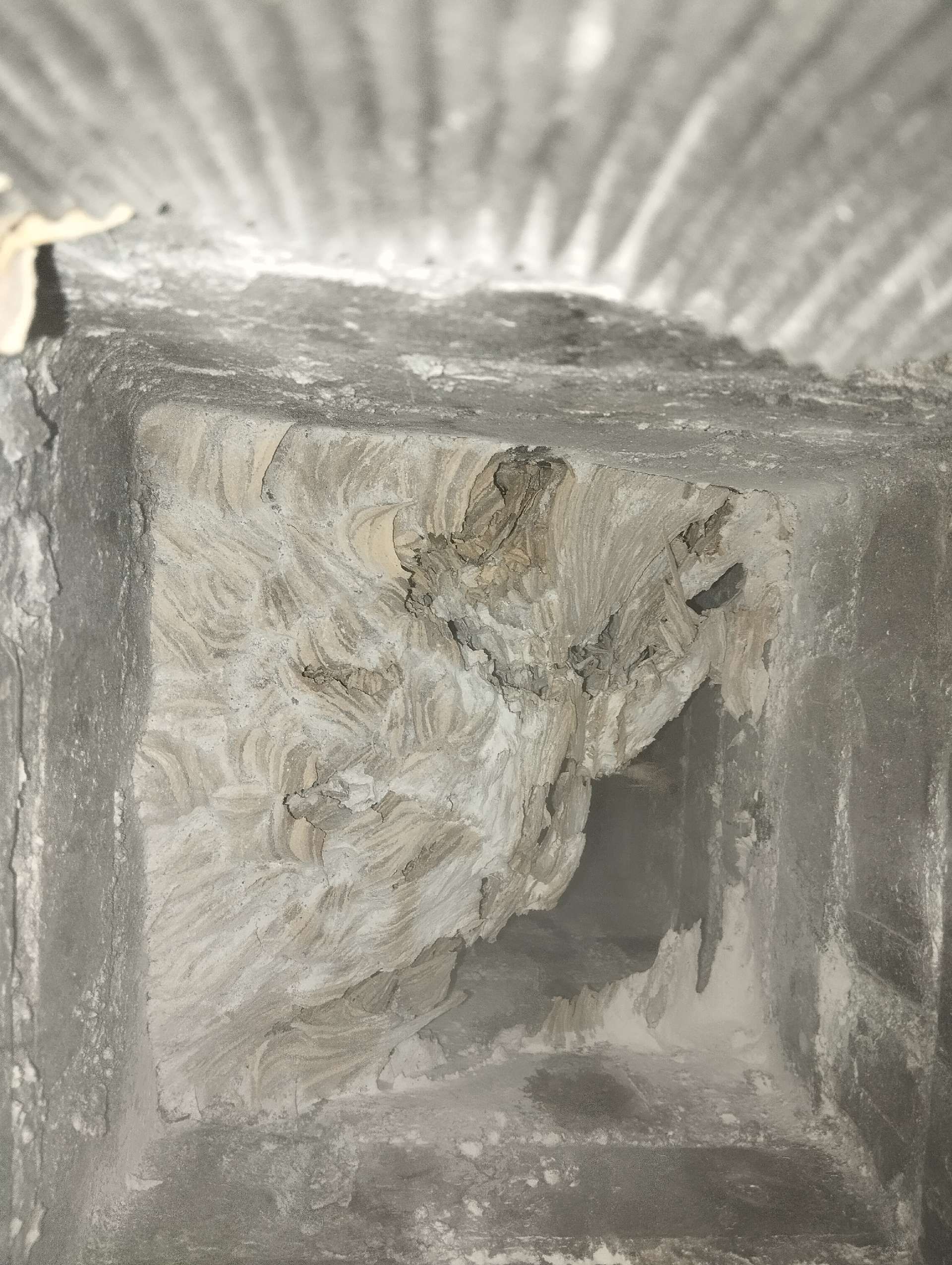 5. Nid: Le nid du frelon asiatique se trouve souvent en hauteur dans les arbres, mais il peut également être souterrain ou dans des structures élevées comme les cheminées. Il a une forme ovale et est fabriqué à partir de bois mâché, ce qui donne au nid une structure semblable à du papier.