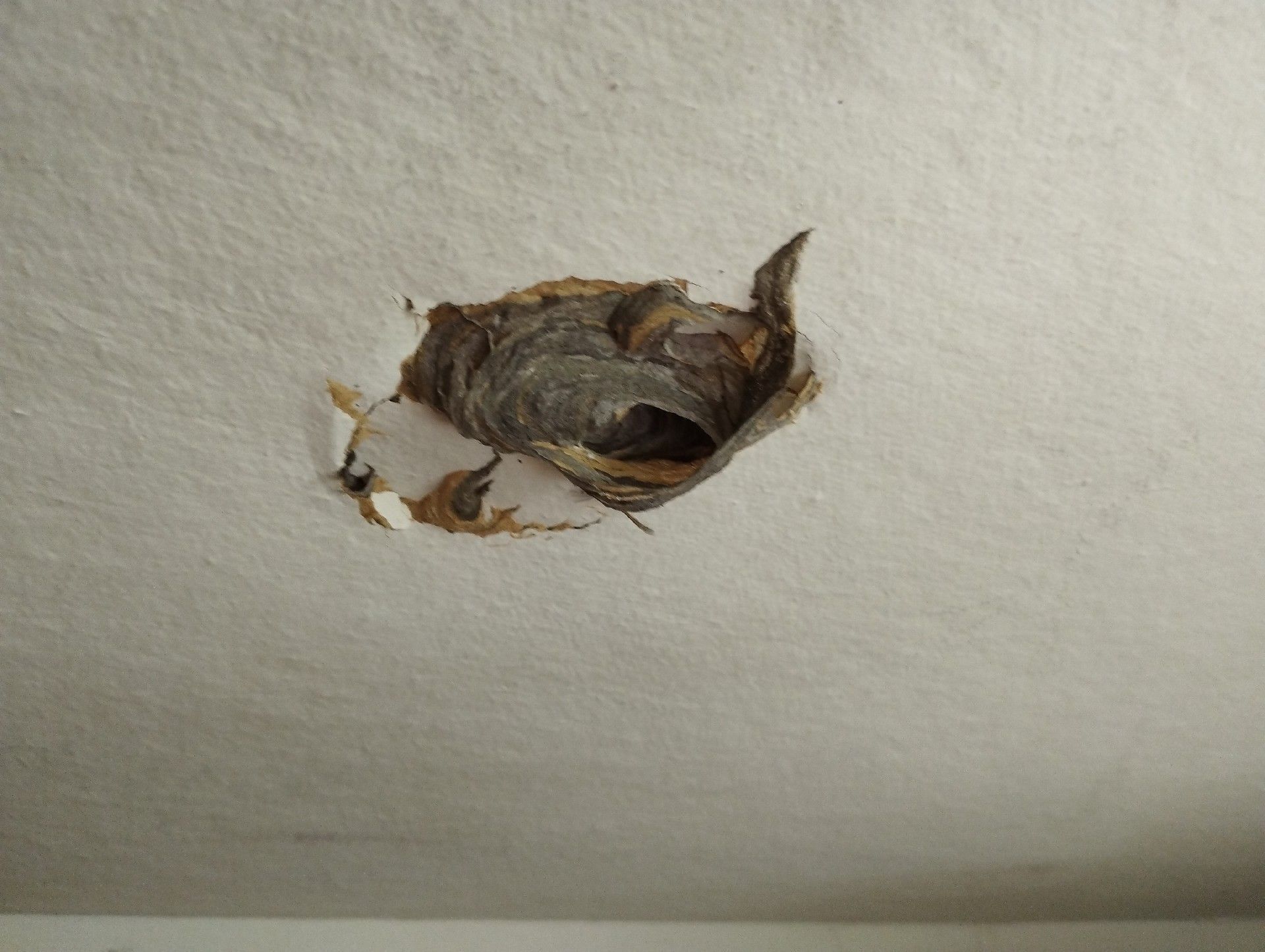 5. Nid: Le nid du frelon asiatique se trouve souvent en hauteur dans les arbres, mais il peut également être souterrain ou dans des structures élevées comme les cheminées. Il a une forme ovale et est fabriqué à partir de bois mâché, ce qui donne au nid une structure semblable à du papier.