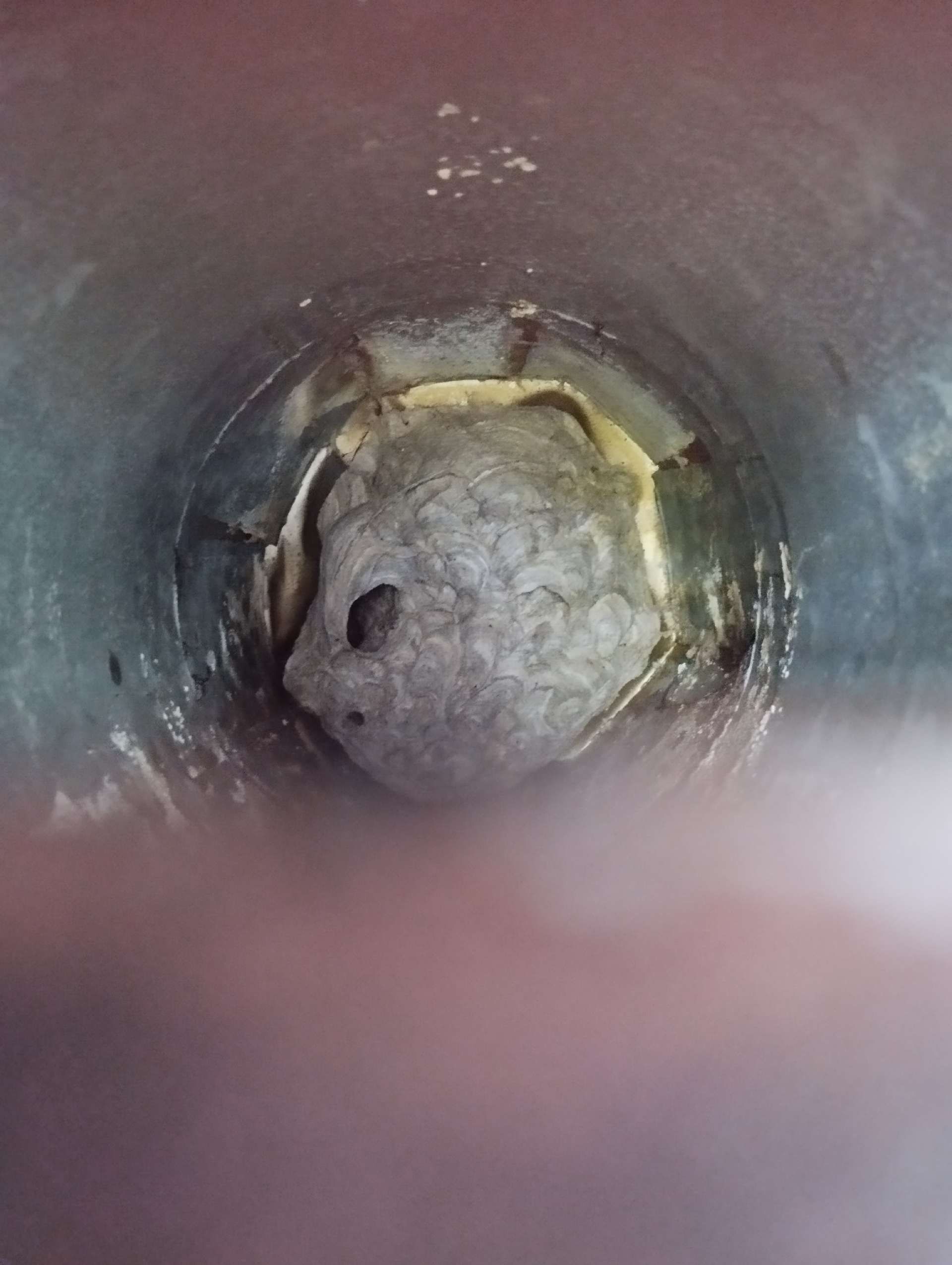 5. Nid: Le nid du frelon asiatique se trouve souvent en hauteur dans les arbres, mais il peut également être souterrain ou dans des structures élevées comme les cheminées. Il a une forme ovale et est fabriqué à partir de bois mâché, ce qui donne au nid une structure semblable à du papier.